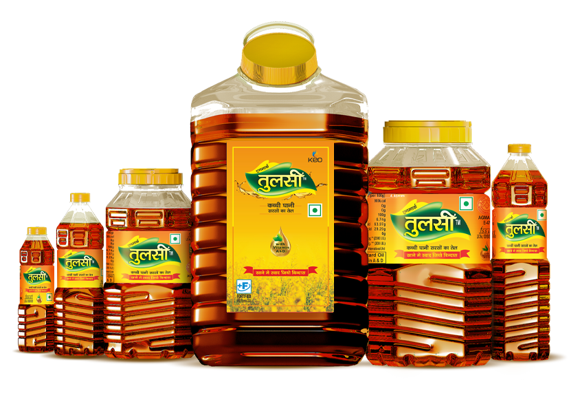 A tinge of “Tulsi” Kachi Ghani Mustard oil in the frying pan fills the kitchen with its aroma. Vegetables or stuffed parathas, Pickle or Pakoras, the oil adds a special flavour to all that is prepared. Mustard oil has a lot of health benefits. It nourishes the skin, helps in healing cracked heel, treats cold, etc. It also helps in relieving pain as it contains alpha-linolenic acid.